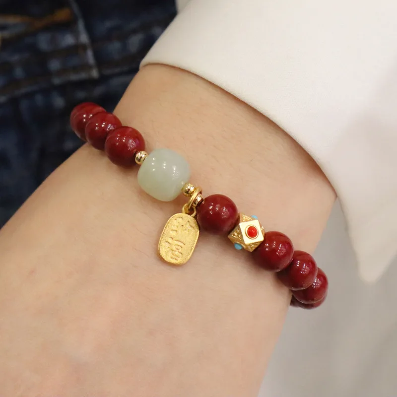 New Arrival Natural Cinnabar Bracelet Hetian Jade Real Gold Plated Blessing Bracelet Charm Bracelet for Women Charm Bracelet for Women; Natural Cinnabar Hetian Jade Bracelet; Real Gold Plated Blessing Bracelet; Connect with us →→→ get catalogue 1.Accept OEM&ODE style,pls contact us. 2.Adjustable size as customer’s request. 3.Different shipping way can be chosen,such as Fedex,UPS,DHL or TNT.